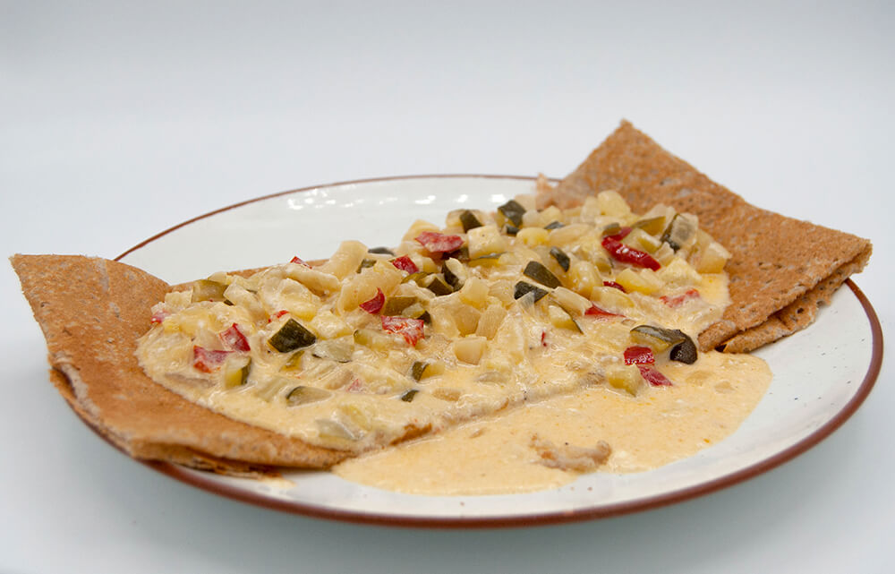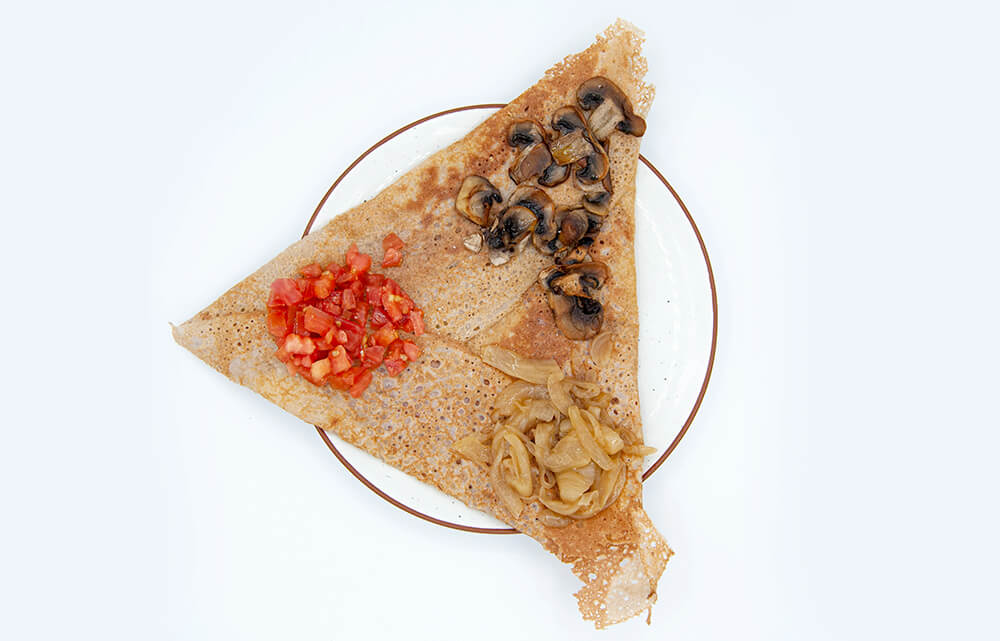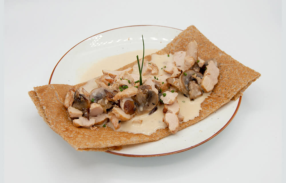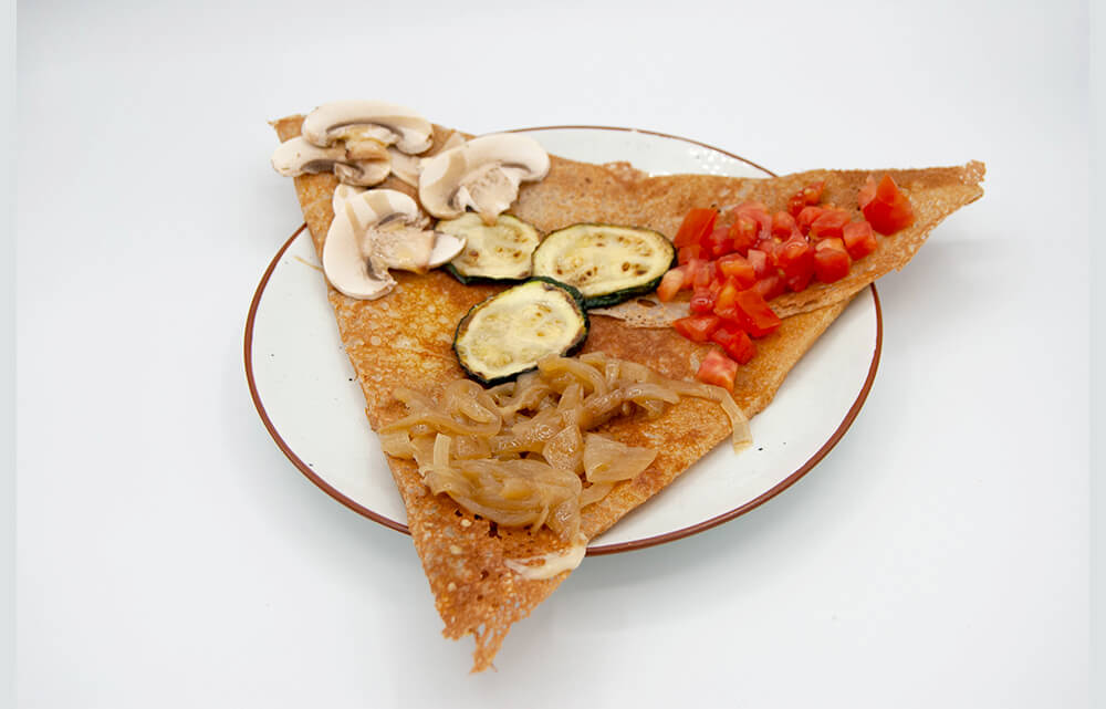 De tradición bretona, son los crêpes salados hechos con harina de trigo sarraceno. Una planta que no contiene gluten, es buena para el corazón, para controlar los niveles de azúcar en sangre y reduce el riesgo de padecer cáncer de colon. Utilizamos trigo sarraceno procedente de la agricultura biológica. No tiene glúten.